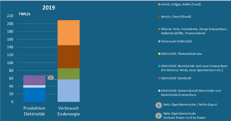 2024 produzierte die Schweiz 81 Terawattstunden Strom, ein Rekord dank viel Niederschlag; verbraucht wurden jedoch «nur» 58 TWh. Die Solarstromproduktion hat sich innert drei Jahren von 4.1 auf 8.2 TWh verdoppelt, ihr Anteil an der Gesamtmenge beträgt aktuell 14 %. Eine komplette E-Mobilität würde gemäss der «Roadmap Grossen» bis 2050 zu einem starkem Verbrauchsanstieg führen. Allerdings kann über die nächsten 25 Jahre mehr zugebaut werden – PV- und Windanlagen – als der Verbrauch wächst. Der Überschuss würde eine allfällige Abschaltung der Atomkraft kompensieren.