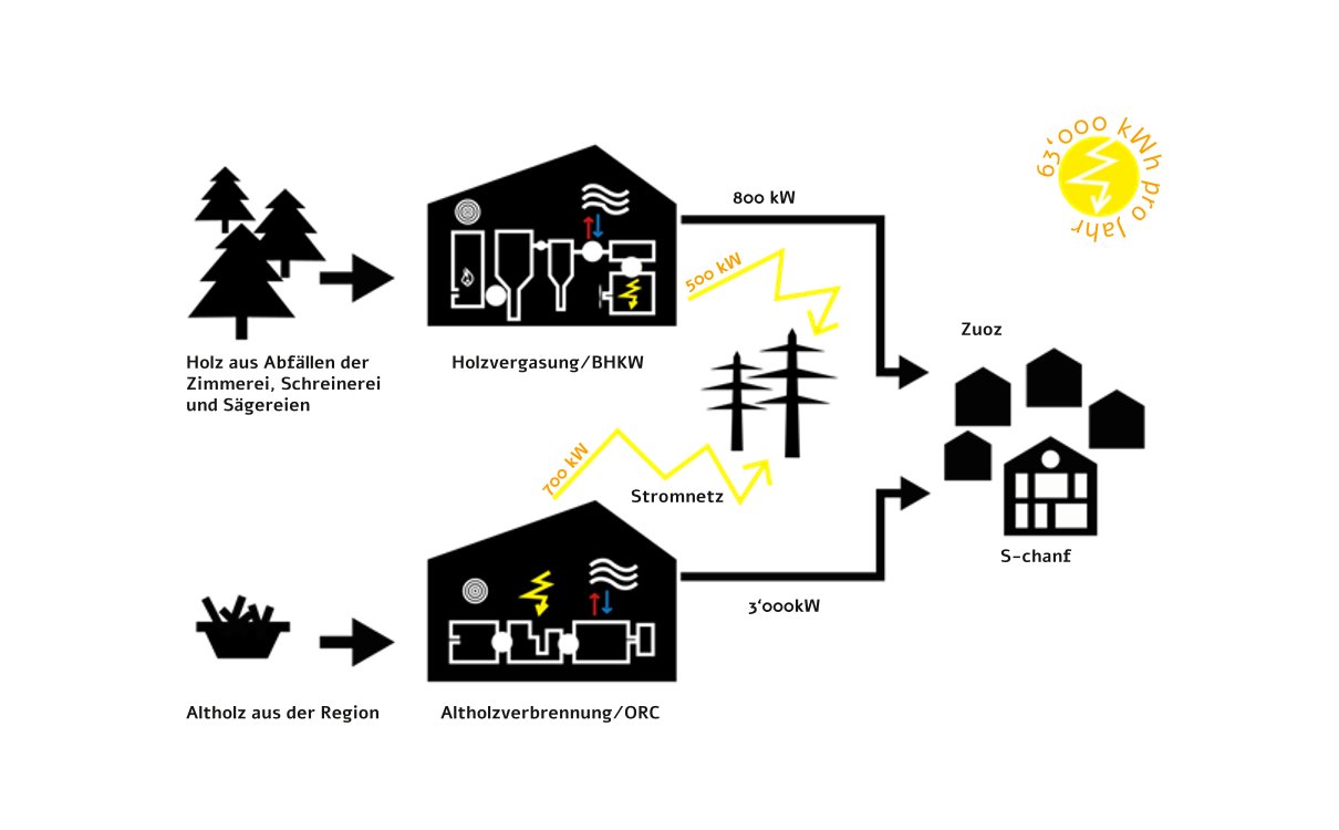 Einzigartig für die Schweiz ist die Nutzung zweier Technologien am selben Standort für die gleichzeitige Bereitstellung von Wärme und Strom aus Holz; das Nutzen fossiler Brennstoffe wird auf ein absolutes Minimum reduziert. Viel unternehmerischer Esprit und Geduld führten nun zu einem überzeugenden Resultat.